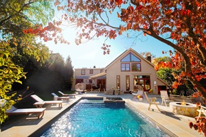 6 Bedrooms • 5 Bathrooms (4 full, 1 half) 5 Baths (4 full, 1 half) • Sleeps 7-14Welcome to your dream escape: two fully equipped homes on an oversized private lot, complete with a seasonal in-ground pool, year-round hot tub, outdoor kitchen with pizza oven, multiple fire pits, and lush outdoor living spaces—all just 60 minutes from NYC and walking distance to the beach, restaurants, shops, and the railway.